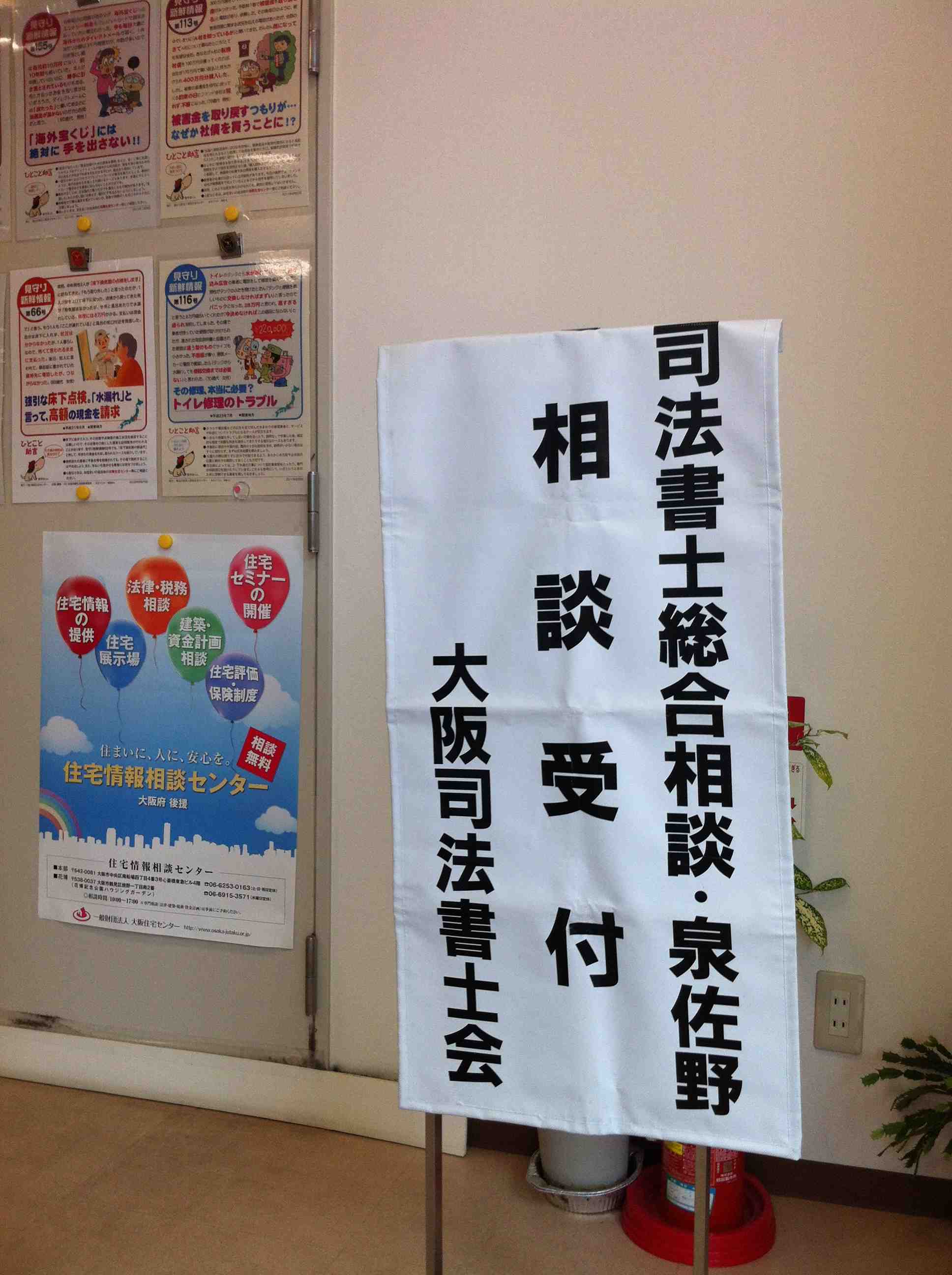 昨日の午後、大阪司法書士会の主催する総合相談会の相談員として泉佐野の消費生活センターへ行ってきました。